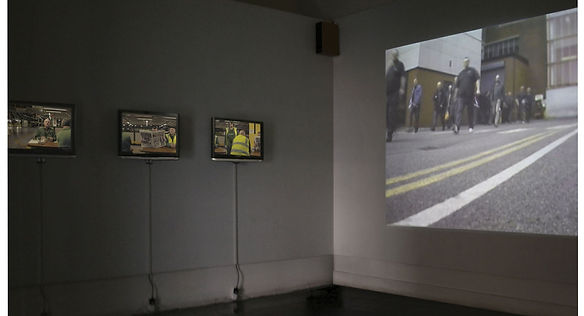 Também no formato de videoinstalação, a artista britânica Nancy Davenport apresentou na Bienal de Liverpool de 2008 o trabalho Workers (Leaving the Factory). Gravado na fábrica de automóveis Jaguar em Halewood, Inglaterra, o material contemplava uma projeção em single channel de operários chegando e saindo do estabelecimento. O segundo elemento se compunha de seis monitores exibindo a pausa dos trabalhadores para o chá.